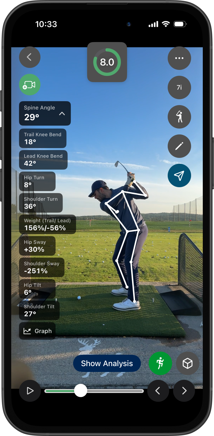 Greenside's biomechanical analysis system allows you to measure changes in swing technique similar to how a launch monitor measures club path and ballflight.